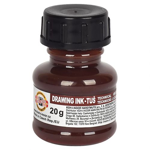 Туш для креслення KOH-I-NOOR, на водній основі, пластиковий флакон 20г, коричнева