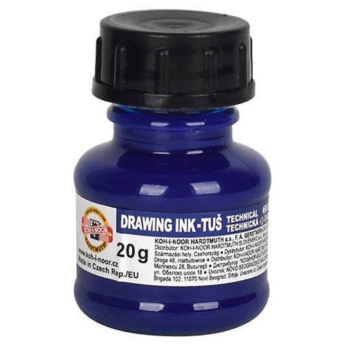 Туш для креслення KOH-I-NOOR, на водній основі, пластиковий флакон 20г, синя