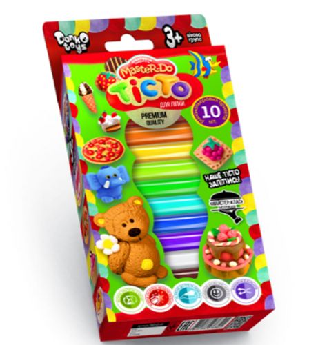 Тісто для ліплення “Master Do”, 10 кольорів. Різнокольорові брусочки тіста і інструкція майстер-клас допоможуть створити чарівний світ з найрізноманітніших предметів і забавних іграшок. Тісто м’яке і добре тримає форму, приємне на дотик.