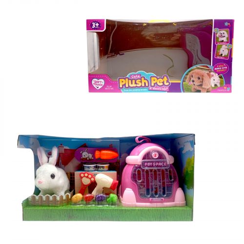Улюбленець “Кролик”, на батарейках, звук, рух лапками, головою і хвостиком, переноска, мисочки, фен, гребінець, в коробці