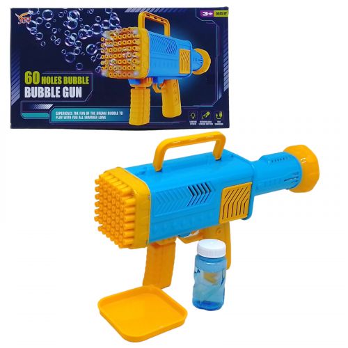 Акумуляторний пістолет із мильними бульбашками “Bubble Gun”. Має цілих 60 отворів для випускання бульбашок, що дозволяє створювати велику кількість бульбашок одним пострілом. Пістолет ідеально підходить для гри як на вулиці, так і вдома. Має яскраве підсвічування. Мильний розчин, акумулятор та USB для зарядки є в комплекті. Розмір бластера у зібраному вигляді: 30 х 16 х 8 см.