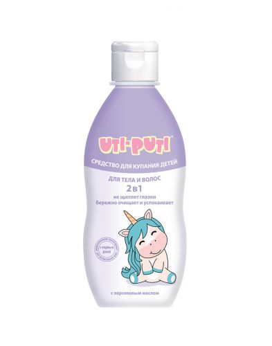 Засіб для купання 2 в 1 для тіла і волосся не подразнює очі, дбайливо очищає і заспокоює. Засіб для купання дітей будь-якого віку. Ефективно очищає шкіру голови і волосся дитини. Комплекс підібраних екстрактів і масла зволожує і заспокоює чутливу шкіру малюка. Без барвників і силіконів. Більшість малюків не люблять ванні процедури. Але якщо їм запропонувати правильний засіб для купання, вони можуть передумати! Уті-Путі 2 в 1 з корисними оліями та екстрактами — ніжна турбота про шкіру та волосся без подразнень. Засіб м’яко очищає і не подразнює очі. Формула містить олію персика, екстракти ромашки та календули, які дбайливо доглядають за дитячою шкірою і волоссям: – зволожують, пом’якшують і заспокоюють, – зберігають еластичність шкіри, – роблять волосся шовковистим і слухняним. Зробіть купання комфортним і приємним для вас обох. Подбайте про чутливу шкіру малюка з перших днів життя!