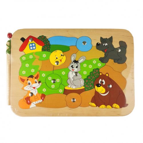 Дерев’яний еко-пазл “Колобок” буде чудовою іграшкою для маленьких любителів казок. У комплекті є паличка з магнітною кулькою на мотузці, за допомогою якої можна витягувати елементи пазла. Іграшка виконана з якісних екологічних матеріалів, дерево гладке на дотик. Розмір пазла – 21х30 см.