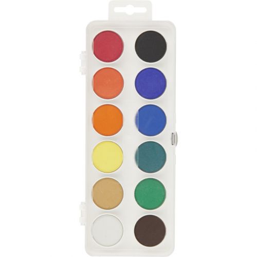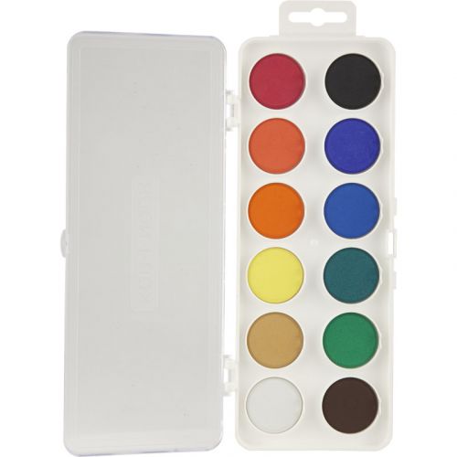 Сухі акварельні фарби у пластиковій упаковці. Яскраво малюють, швидко сохнуть, не розтікаються. Підходять для школярів, студентів і художників-початківців.