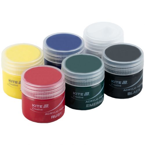 Акрилові фарби Kite Creative K-271, 6 кольорів, кожна баночка по 20мл — палітра для безмежної творчості! Фарби підходять для малювання на різноманітних поверхнях, таких як: папір, тканина, кераміка, скло, метал, камінь, дерево і пластик. Легко наносяться, не потребують підготовки поверхні та швидко висихають. Після висихання фарби стають водостійкими та не вигорають на світлі, тому ваші роботи збережуть яскравість і насиченість кольорів надовго. Безпечні для дітей — мають нейтральний аромат та безпечні компоненти у складі.