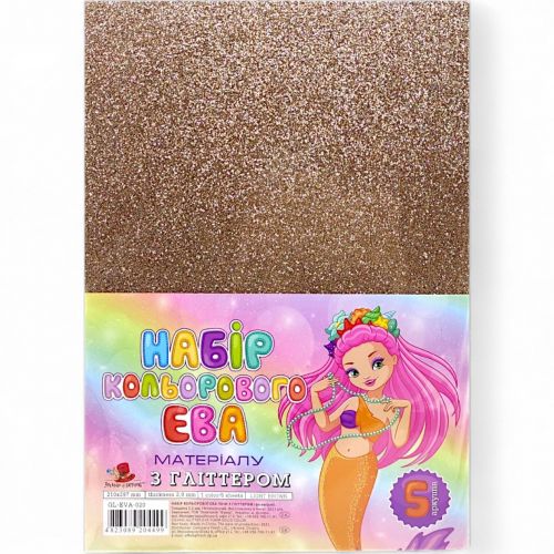 Фоаміран з глітером А4 (210х297мм, товщина 2 мм) 5 аркушів, світло-коричньовий