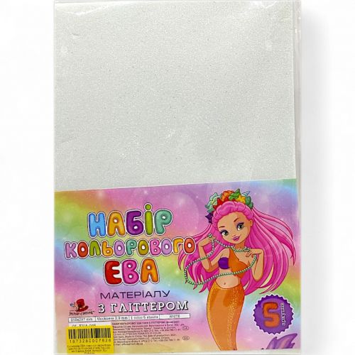 Фоаміран з гліттером (21х29,7см, товщина – 2 мм), 5 аркушів, білий