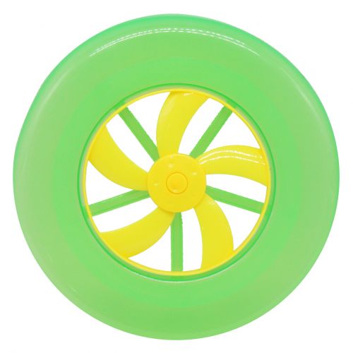 Велика літаюча тарілка (фризбі ) із міцного пластику. Тарілка зроблена таким чином, що при польоті створюється підйомна сила, яка дозволяє кидати їх на значні відстані та з великою точністю. Також до фризбі прикріплений яскравий пропелер, що обертається під час польоту. Діаметр: 22.5 см.