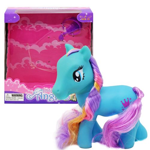 Мила фігурка у вигляді поні, виконана у стилістиці популярного дитячого мультсеріалу “My little pony”. Іграшка якісна та міцна, виготовлена з надійного та приємного на дотик пластику. Конячка має довгу гриву і хвіст, які можна заплітати в різноманітні зачіски. У наборі також є тіара і гребінець. Розмір фігурки: 15х19х6 см.