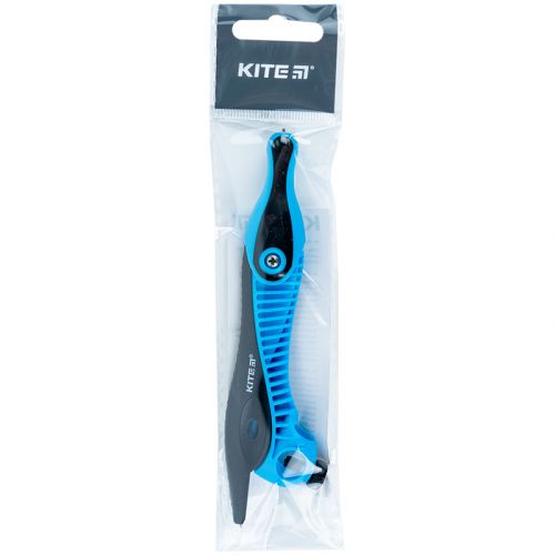 Пластиковий циркуль Kite K18-387-07 представлений у полібезі. Виріб призначений для креслення кіл і дуг кіл, також може бути використано для вимірювання відстаней, зокрема, на картах. Також, використовується в геометрії, кресленні, для навігації або створення правильного геометричного малюнка. Циркуль має металевий наконечник і отвір для олівця. Кріплення рухомої частини циркуля виконано фіксуючим болтом. Пластикові деталі виробу пофарбовані в блакитний і чорний колір. Довжина циркуля 135 мм.