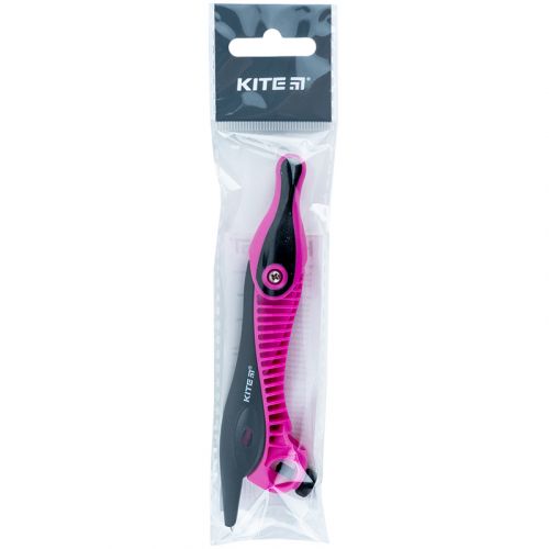 Пластиковий циркуль Kite K18-387-10 представлений у полібезі. Виріб призначений для креслення кіл і дуг кіл, також може бути використано для вимірювання відстаней, зокрема, на картах. Також, використовується в геометрії, кресленні, для навігації або створення правильного геометричного малюнка. Циркуль має металевий наконечник і отвір для олівця. Кріплення рухомої частини циркуля виконано фіксуючим болтом. Пластикові деталі виробу пофарбовані в рожевий і чорний колір. Довжина циркуля 135 мм.