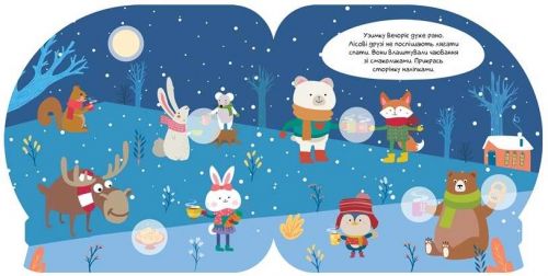 Чарівна книжечка за наліпками у вигляді кришталевої кулі. На її сторінках ви побачите, як люди і тварини радіють дивовижній порі року – зимі. Вони ліплять снігових баб, катаються на ковзанках і санчатах. А за допомогою наліпок малюк доповнюватиме малюнки та розвиватиме дрібну моторику, кмітливість, уяву, логіку і фантазію.