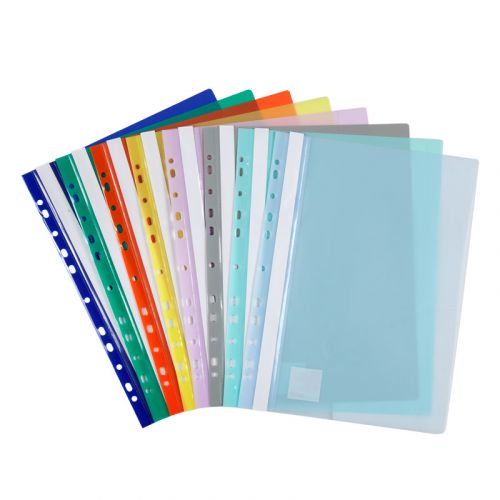 Швидкозшивачі – просте і доступне рішення для систематизації, зберігання, презентації документів. Швидкозшивачі Axent виготовлені зі щільного поліпропілену товщиною 150 мкм, з прозорим верхом товщиною 120мкм. На лицьовій стороні розташована кишеня з пластикової смугою білого кольору, на якій можна вказати зміст. Додатковий функціонал, універсальна бокова перфорація, дає можливість системно зберігати вже підшиті документи в архіваторах різного типу, або зшивати між собою. Фактура поверхні – глянцева.