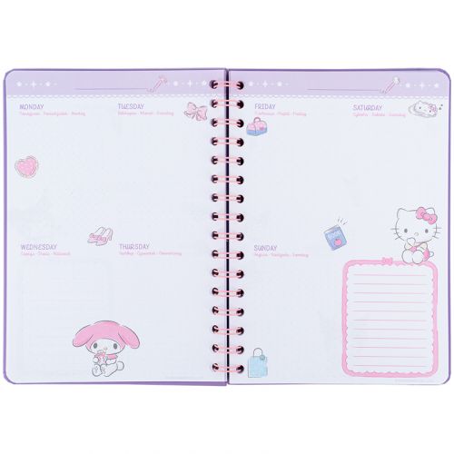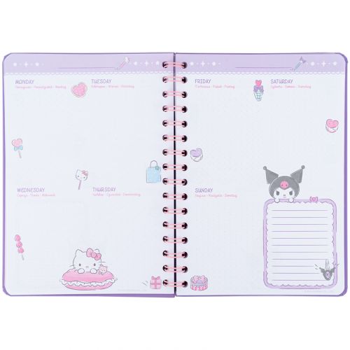 Щоденник-планер на спіралі. Тверда картонна обкладинка з фіксуючою резинкою. Ефект на обкладинці: голографічне покриття. Всередині: • Розклад на тиждень; • Тиждень на двох сторінках, 5 різних дизайнів розворотів тижня; • 4 кольорові розворити в дизайн ліцензії; • 2 сторінки із стікерами; • Карман для зберігання дрібниць; Внутрішній блок : англійська, українська, польська, німецька. Формат А5, 138 стр., щільність аркушів 80г/м2.