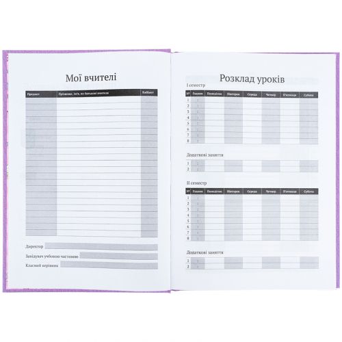 Шкільний щоденник Kite в твердій картонній обкладинці із яскравим зображенням. Листи прикріплені на міцній клейовий основі. Внутрішній блок виконаний з паперу кремового кольору в стандартній формі, розрахований на 42 тижнів. Інформаційний блок: • Табель. • Розклад уроків. • Список вчителів. • Державна символіка України. Пройшов гігієнічні випробування. Щільність аркушів 70 г/м2. Розмір: 170х238 мм. 48 аркушів. Декор: софт тач та вибірковий УФ лак