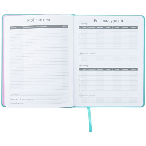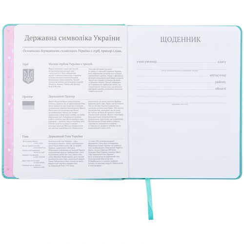 Шкільний щоденник Kite в твердій обкладинці яскравого кольору. Листи прикріплені на міцній клейовий основі. Внутрішній блок виконаний з паперу білого кольору в стандартній формі, розрахований на 46 тижнів. Інформаційний блок: • Табель. • Розклад уроків. • Список вчителів. • Державна символіка України. Пройшов гігієнічні випробування. Щільність аркушів 70 г/м2.
