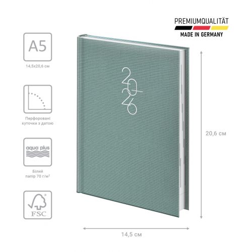 Датований щоденник BRUNNEN 2026 Стандарт — стильна класична модель. Оптимізований простір для записів та зручна навігація. Особливості: Три мови: українська, англійська, німецька. Загальна кількість сторінок — 336. Одна сторінка — один день. Організатор часу з 07:00 до 22:00. Якісний друк у сірому кольорі. 4 сторінки для загального планування на рік. Розширений інформаційний блок. Білий європейський папір 70 г/м2. Закладка-лясе та відривні куточки з датою. Стильна обкладинка Linesse. Золоте тиснення.