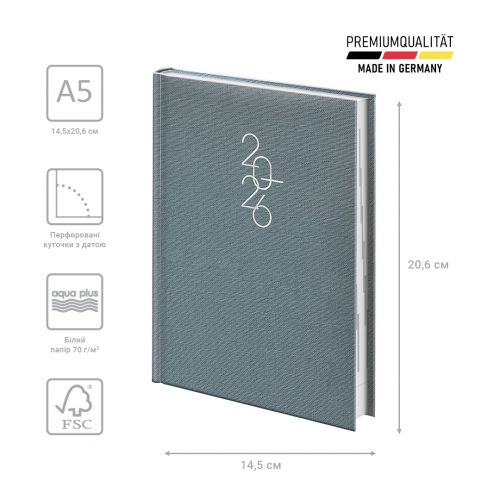 Датований щоденник BRUNNEN 2026 Стандарт — стильна класична модель. Оптимізований простір для записів та зручна навігація. Особливості: Три мови: українська, англійська, німецька. Загальна кількість сторінок — 336. Одна сторінка — один день. Організатор часу з 07:00 до 22:00. Якісний друк у сірому кольорі. 4 сторінки для загального планування на рік. Розширений інформаційний блок. Білий європейський папір 70 г/м2. Закладка-лясе та відривні куточки з датою. Стильна обкладинка Linesse. Срібне тиснення.