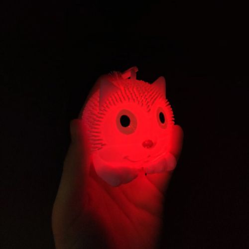 Гумовий антистрес-світяшка у вигляді милого котика. Кумедна, яскрава іграшка розміром 7х7х9 см. Виконана із якісних, безпечних матеріалів. Має різнокольорове підсвічування (включається при ударі). За допомогою петельки на кінці шнурочка можна закріпити іграшку на пальці та відбивати її рукою. Такі ігри відмінно розвивають дрібну моторику та спритність. Рекомендовано для дітей старше 3-х років.