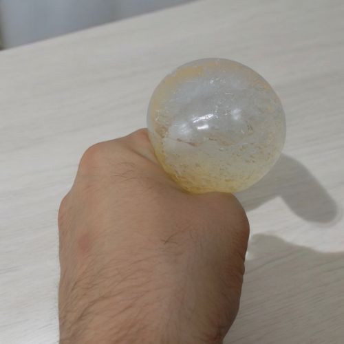Антистрес-іграшка у вигляді кулі, наповненої рідиною, з пакетом, що містить дрібні гранули. При стисканні кулі пакет усередині розривається, активуючи реакцію, в результаті якої гранули перетворюються на масу, що нагадує сніг, створюючи відчуття прохолоди. Іграшка приємна на дотик, її можна мʼяти і розтягувати, що сприяє зняттю стресу. Діаметр – 7 см.