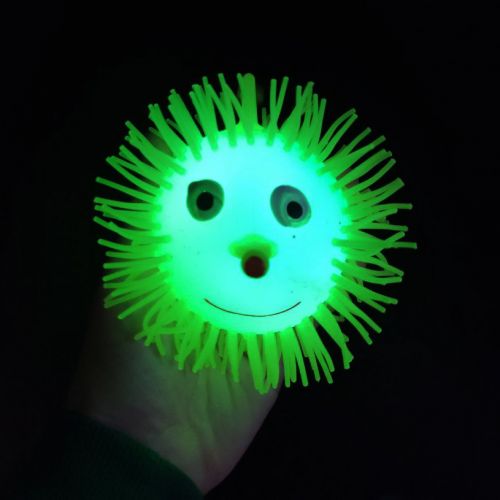 Кумедна світяшка у вигляді їжачка. Іграшка порожня всередині й наповнена повітрям по типу надувної кулі. Всередині іграшки також є пластикова світяшка, що активується при ударі об поверхню. Виконано з якісних та безпечних матеріалів. Для дітей старше 3-х років. Якщо іграшка трошки здута, можна накачати її за допомогою звичайного медичного шприца з голкою (на іграшці є спеціальний отвір).