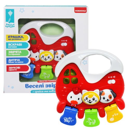 Іграшка “Веселі звірятка” інтерактивна. Працює на батарейках. Є світлові та звукові ефекти. Виглядає дуже мило і яскраво і сподобається дитині. Допоможе тренувати зір та слух. Виготовлено з якісних та безпечних матеріалів. У іграшки вбудований динамік, який забезпечує мʼяке, тихе та ненавʼязливе звучання.