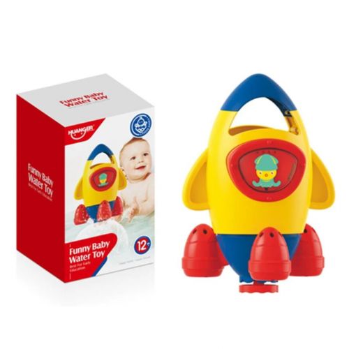 Яскраві пластикові іграшки у вигляді ракети. Якщо заповнити іграшку водою та підняти її вгору, утвориться гарний куполоподібний фонтан. Верхня частина ракети обертається довкола своєї осі. На ній також є віконця, в яких можна побачити маленькі кумедні фігурки. Висота іграшки: 18 см. Для дітей віком від 12-ти місяців.