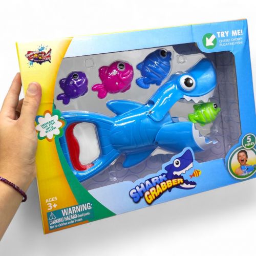 Іграшка для купання “Hungry Shark” – це весела можливість пограти за голодну акулу та допомогти їй зʼїсти всіх рибок. В комплекті є 4 рибки, що ідеально поміщаються в пащу хижаку. Щоб проковтнути всіх морських мешканців – треба натиснути на ручку, яка відповідає за відкривання ротика в іграшки та дає змогу клацати щелепою акули. Виконана з якісних та міцних матеріалів що ідеально підходять для водних ігор.