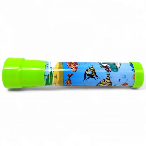 Іграшка калейдоскоп – це чудова можливість показати дитині, як працює оптична ілюзія, та як за допомогою простих обертів змінюється візерунок всередині. Виконаний у стилі морських мешканців. Усередині – бісер та різноманітні фігурки, які допомагають склу створювати магію зміни кольору та форми картинки, що їх віддзеркалює.