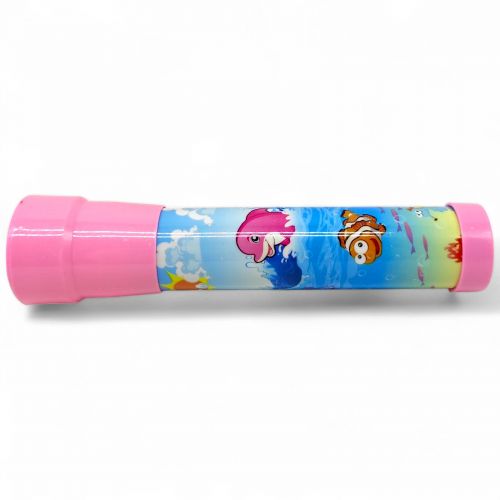 Іграшка калейдоскоп – це чудова можливість показати дитині, як працює оптична ілюзія, та як за допомогою простих обертів змінюється візерунок всередині. Виконаний у стилі морських мешканців. Усередині – бісер та різноманітні фігурки, які допомагають склу створювати магію зміни кольору та форми картинки, що їх віддзеркалює.