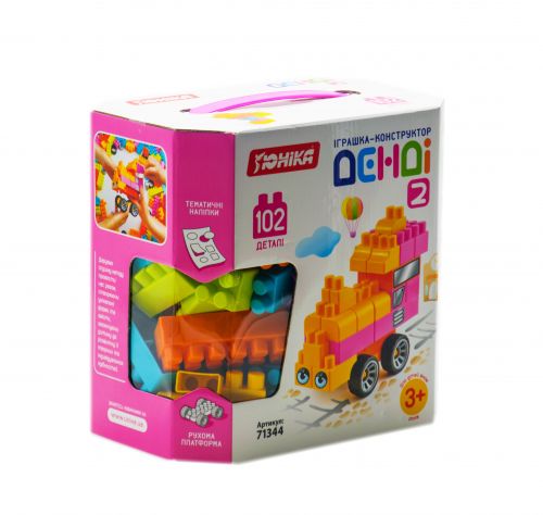 Яскравий пластиковий конструктор, що складається з 102 елементів. З яскравих пластикових детальок можна зібрати безліч різних фігурок. Готову фігурку можна прикрасити цікавими наклейками, які також йдуть в комплекті.