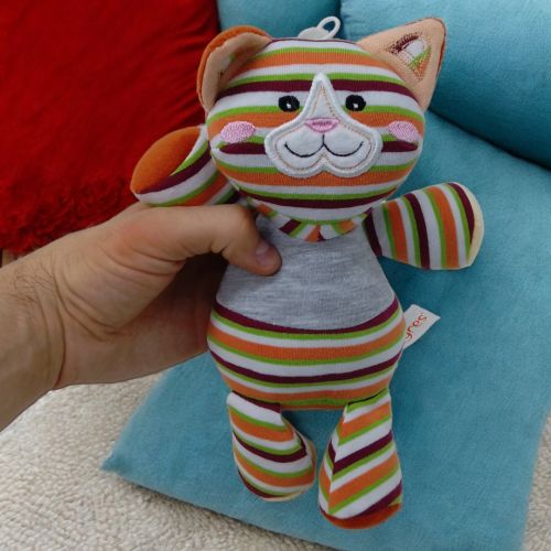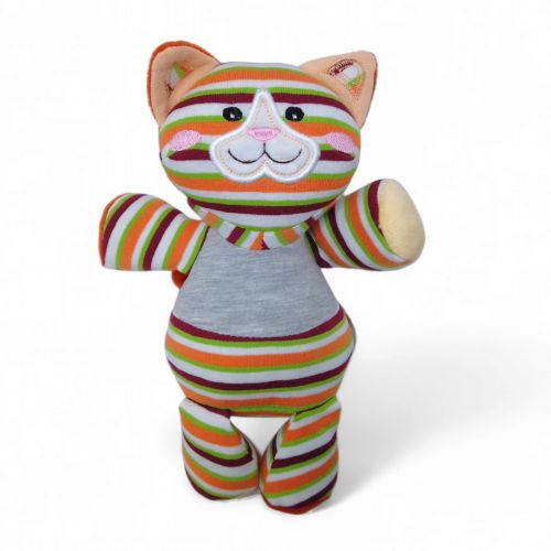 Мʼяка іграшка у вигляді кумедної тваринки (смугастого котика). Іграшка дуже приємна на дотик. Усі шви на ній міцні та надійні. Розмір – 22х10х8 см. Ігри з плюшевими іграшками чудово розвивають у малюка уяву, фантазію, сюжетно-образне мислення. Виконано з якісних та міцних матеріалів. Для діток старше 3-х років.