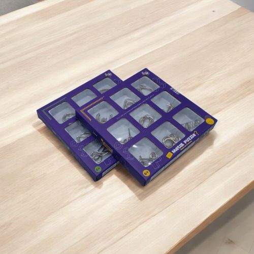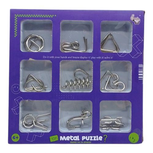 Набір містить 9 металевих головоломок різної складності, які зацікавлять як дітей, так і дорослих. Основна мета – акуратно розплутати деталі, зберігаючи їхню цілісність. Такі головоломки розвивають логічне мислення, терпіння та дрібну моторику. Компактний розмір дозволяє брати їх із собою в дорогу або використовувати для розслаблення у будь-який час. Прекрасний вибір для тренування розуму та розваги!