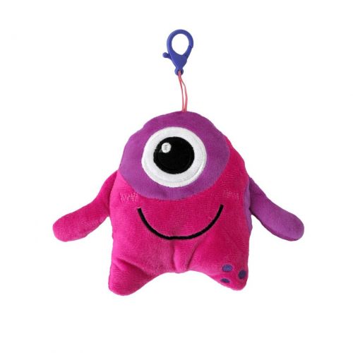 Кумедна іграшка у вигляді фіолетового монстрика “Фіола”. М’яка і приємна на дотик, усередині набита кульками. Зверху є кріплення, за допомогою якого іграшку можна причепити на коляску або ліжечко. Розмір: 20х14 см.