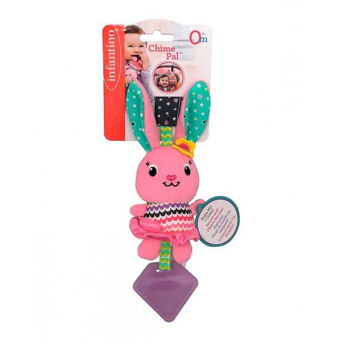 Цей дуже красивий барвистий кролик видає звуковий сигнал, коли дитина трясе іграшку. Вуха кролика мають шарудивий звук, також є прорізувач для зубів. Тканинний ремінець на голові, із застібкою на липучці, дозволяє повісити іграшку всюди.