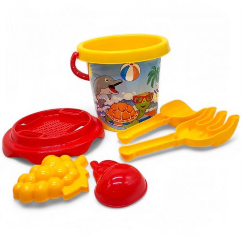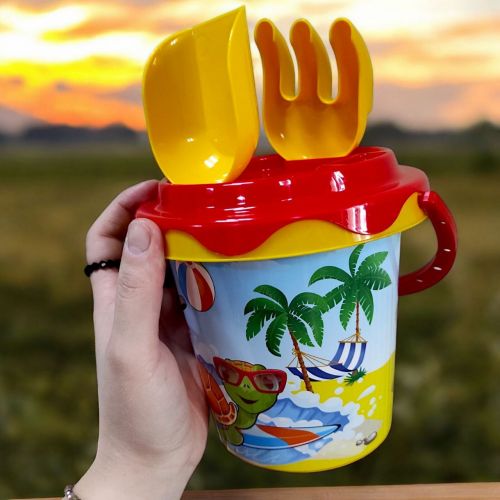 Набір для гри з піском, який ідеально підійде для пляжу чи пісочниці. У наборі присутні різноманітні фігури, маленька дитяча лопата та граблі, а також саме відерце, щоб робити найкращі піщані пасочки! Виготовлений з пластику. Рекомендовано для діток старше 1 року.