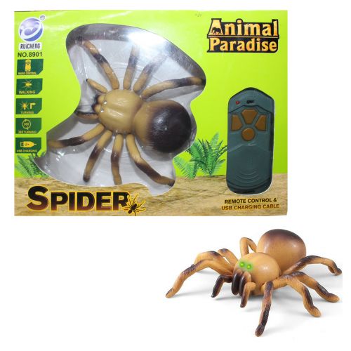 Іграшка на радіокеруванні “Павук” буде оригінальним подарунком для дитини. Павук бігає у всіх напрямках, живенько перебираючи лапками. Керувати рухом іграшки можна за допомогою пульта. Розмір павука – 17х15х5 см. Іграшка працює від акумулятора (є в комплекті), а пульт управління – від 2-х батарейок АА (немає в комплекті).