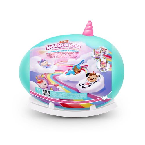 Babycorns народжуються з магії і всього чарівного! Ця весела лялька приховує безліч приємних сюрпризів у своїй чарівній упаковці, яку можна використовувати як люльку-гойдалку. Придивіться – пустушка для спокійного сну, веселі наліпки для творчості, слайм для чарівних ігор і навіть м’яка ковдрочка для ляльки, щоб вона завжди була в теплі та багато чого іншого. З лялькою-сюрпризом Babycorns кожен момент стає магією, а люлька-гойдалка стає літаючим килимом в уявному казковому світі вашої дитини.