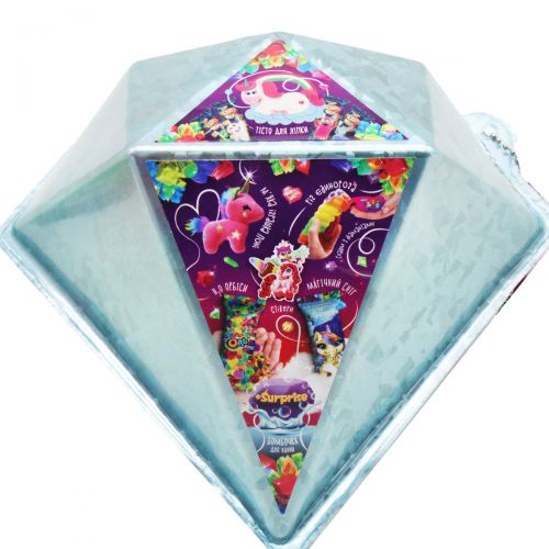 Іграшка-сюрприз “Diamond Pony” буде відмінним подарунком для дитини. У скриньці є безліч фантастичних сюрпризів, які зроблять дозвілля малюка цікавим і незабутнім. У наборі: м’яка іграшка єдиноріг – 1 шт., Unicorn Slime – 1 шт., бомбочка для ванни в формі діаманта – 1 шт., комплект кристалів для створення браслета – 1 шт., тісто для ліплення – 4 шт., комплект стікерів – 1 шт., штучний сніг “Magic Snow” – 1 шт., H2Orbis – 1 шт., інструкція – 1 шт.