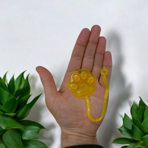 Лизун-липучка у вигляді кумедної лапки котика з хвостиком-шнурочком – це весела антистрес-іграшка, яка легко тягнеться, липне до поверхонь і повертається назад. Яскравий дизайн, приємна на дотик текстура і компактний розмір роблять її чудовим вибором для ігор та зняття напруги як вдома, так і в дорозі.