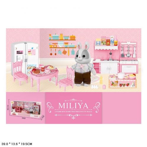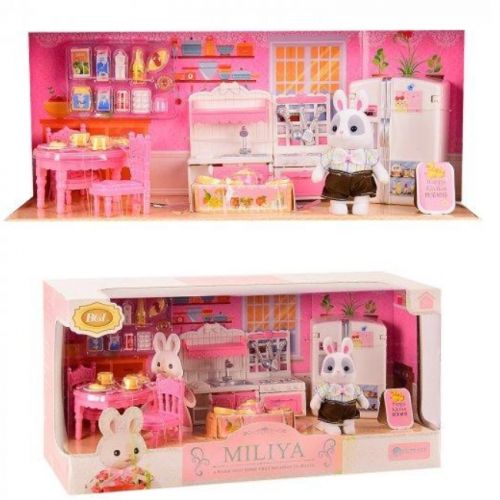 Комплектація: Фігурка, стіл, 2 стільці, холодильник, плита, мийка, аксесуари та продукти