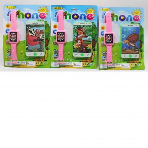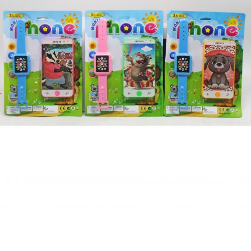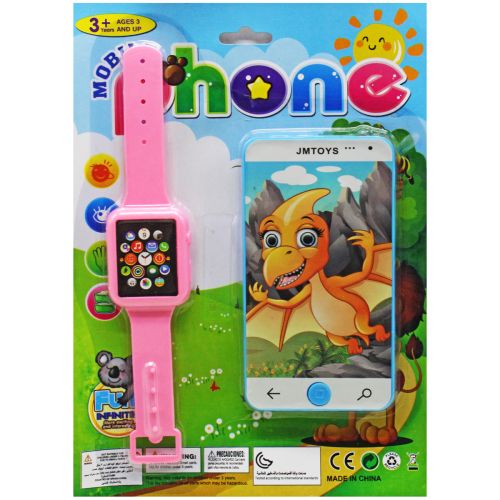 Яскравий ігровий набір, до якого входить мобільний телефон та смарт-годинник для найменших. Натискаючи на кнопку на телефоні, можна почути різні звукові ефекти. Розмір телефону – 13х7х1 см, довжина ремінця годинника – 19 см (може регулюватися. Виконано з якісних та міцних матеріалів. Різні види в асортименті.