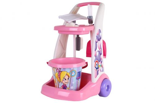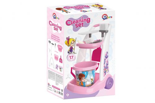 Ігровий набір для прибирання являє собою візок на коліщатках, в якій розміщені швабра, мітла, щіточка і совок, а на нижній полиці візки можна поставить відерце. Виконано набір з якісного пластику. Для дітей від 3-х років.