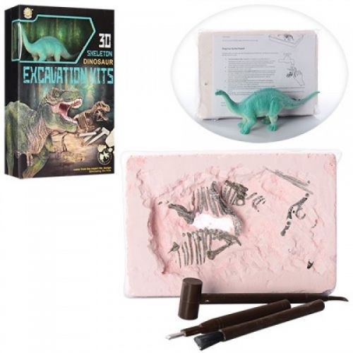 У цій коробці знаходиться пласт скам’янілої земної породи з цією копією скелета динозавра, а також археологічний набір інструментів, необхідних для проведення розкопок. До расочная інструкція, допоможе правильно підійти до процесу. Після розкопки можна зібрати фігурку динозавра. Можна зібрати серію з різних динозаврів.