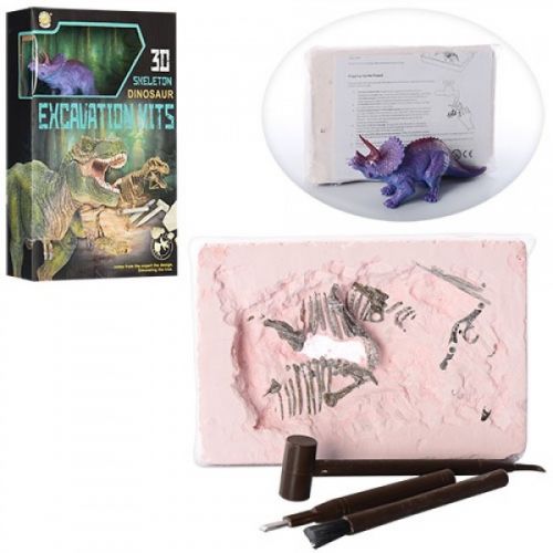 У цій коробці знаходиться пласт скам’янілої земної породи з цією копією скелета динозавра, а також археологічний набір інструментів, необхідних для проведення розкопок. До расочная інструкція, допоможе правильно підійти до процесу. Після розкопки можна зібрати фігурку динозавра. Можна зібрати серію з різних динозаврів.