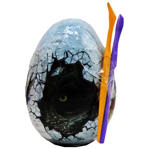 Яйце – пласт скам’янілої земної породи з копією скелета динозавра, а також археологічний набір інструментів, необхідних для розкопок. Після розкопки можна зібрати фігурку динозавра. Різні кольори в асортименті.