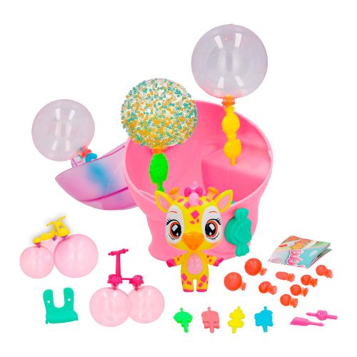 Ігровий набір Bubiloons – Бабі. Маленький герой сховався всередині сфери з різнокольоровими кульками. Слід повернути спеціальний важіль – кульки опустяться вниз, а Ви побачите свого героя! В колекції аж 13 різноманітних персонажів. Крім героя у наборі є цікаві аксессуари та надувні кульки. Ваш герой може надувати ці кульки. Необхідно вставити паличку-трубочку однією стороною до рота героя, а до іншої сторони прикріпити одну з кульок. Здавлюйте голову героя з двох сторін, і дивіться, як надувається кулька!