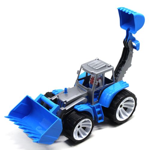 Пластикова іграшка “Трактор” буде чудовим подарунком для дитини. Розмір трактора – 37х16х19 см., діаметр коліс – 10.5 см. (задні), 9 см. (передні). Оснащений двома ковшами – більшим спереду і поменше – ззаду. Виконано з якісного та міцного пластику. Для дітей віком від 3-х років.