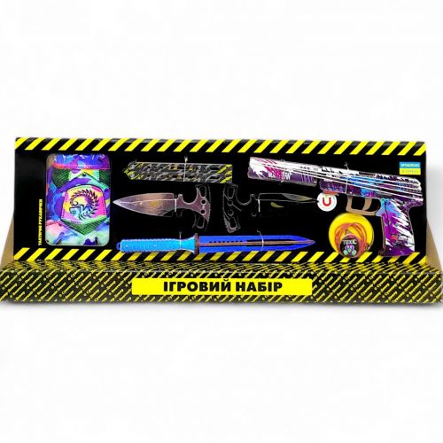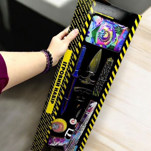 Дитячий ігровий набір “BIG BOX” – ідеальне рішення для любителів активних ігор та безпечних баталій! Особливо набір сподобається фанатам ігор CS:GO та Counter-Strike 2. У комплект входять: деревʼяний резинкостріл (гумкостріл) з резинками, тренувальні сувенірні ножі, тактичні рукавички та стильний брелок. *Забарвлення може відрізнятися від вказаного на фото.