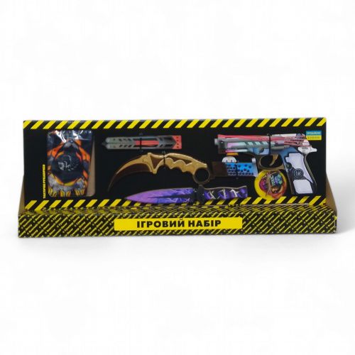 Дитячий ігровий набір “BIG BOX” – ідеальне рішення для любителів активних ігор та безпечних баталій! Особливо набір сподобається фанатам ігор CS:GO та Counter-Strike 2. У комплект входять: деревʼяний резинкостріл (гумкостріл) з резинками, тренувальні сувенірні ножі, тактичні рукавички та стильний брелок. *Забарвлення може відрізнятися від вказаного на фото.